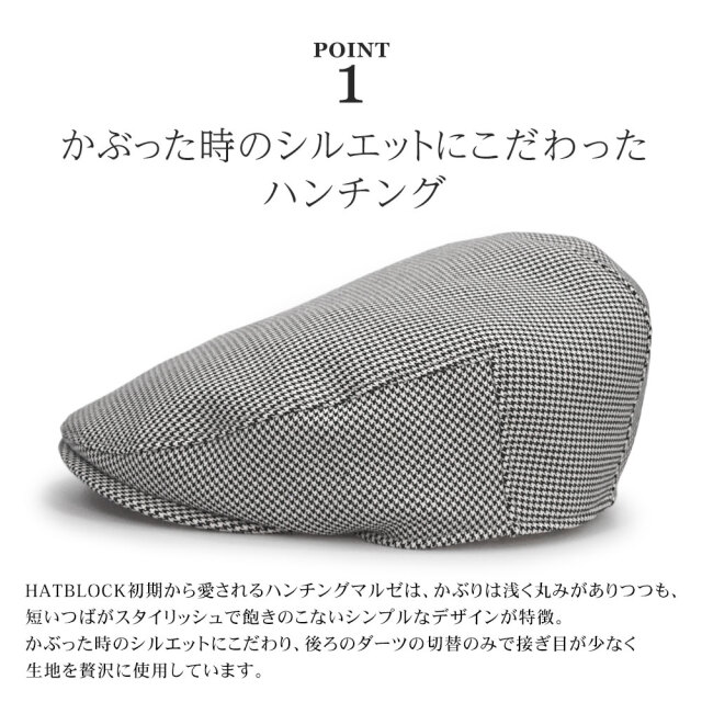 | 特徴 | 山鶴株式会社オリジナルブランド「HATBLOCK(ハットブロック)」。 その中でも「ハンチングマルゼ」は、丸みがありつつも、程よくシャープでスタイリッシュなシルエットが特徴。被りは浅めで、短いひさしがお顔を引き立てます。中がくり抜かれたポリ芯をツバに使用することで、額(ひたい)に当たる部分が少なく、夏でも被りやすくなっています。 大正10年創業名古屋市熱田区の帽子メーカー山鶴株式会社の職人が、品質にこだわり、一つ一つ丁寧に製作しています。 |