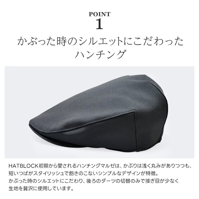 | 特徴 | 山鶴株式会社オリジナルブランド「HATBLOCK(ハットブロック)」。 その中でも「ハンチングマルゼ」は、丸みがありつつも、程よくシャープでスタイリッシュなシルエットが特徴。被りは浅めで、短いひさしがお顔を引き立てます。中がくり抜かれたポリ芯をツバに使用することで、額(ひたい)に当たる部分が少なく、夏でも被りやすくなっています。 大正10年創業名古屋市熱田区の帽子メーカー山鶴株式会社の職人が、品質にこだわり、一つ一つ丁寧に製作しています。 |